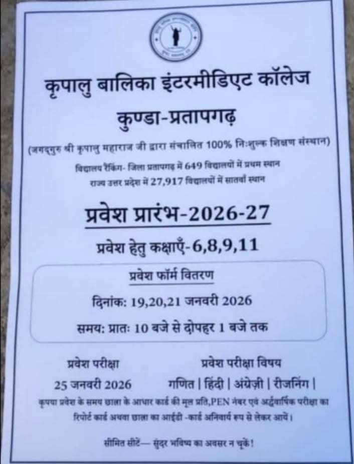 कुंडा प्रतापगढ़ जगद्गुरु कृपालु जी महाराज के कालेज मे बालिकाओं का एडमिशन चालू